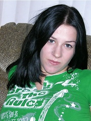 Petite teen with black hair Matilda Bow exposes her hairy armpits and twat