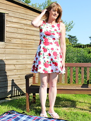 Redhead babe Zazi Darling can't keep her hands off her all natural tits or her flat belly! Her clothes come off as she feels herself up, letting