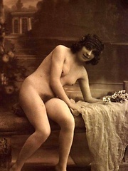Guerlain takes off sexy flowing dress and flaunts her delectable unshaven labia with a warm, engaging smile on the sofa.