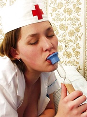Hairy Blonde Speculums Up her Vagina in Closeup