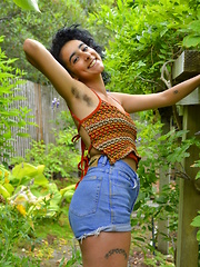 Irresistible teen feels free in the sweet smell of flowers, where she spreads her legs to show her amazing little twat.