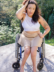 Venice Lei poses outdoors as she flaunts her hairy, meaty pussy.