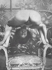 Delightful shapely brunette bombshell taking off clothes and spreading legs on the sofa.