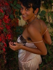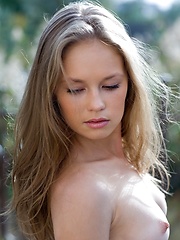 Brunette babe loves as the sunshine matches with her hair sparkling, and makes a nice scene for posing nude.