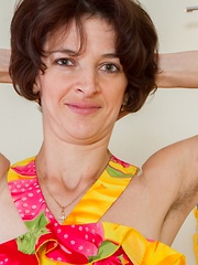 Ulia strips her sexy dress ass he bares her unshaven pussy.